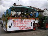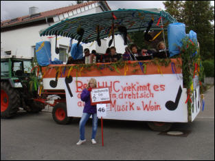 Nach einem Jahr "Abstinenz" waren wir in diesem Jahr natürlich wieder mit von der Partie. Von einem Festwagen der Familie Gaus herab, der vom Schlepper der Familie Röll bewegt wurde, wurden die Besucher des Festumzugs mit flotten Akkordeonklängen beschallt. Trotz wechselhaftem und kühlem Wetter hat es wieder richtig Spaß gemacht, beim Festumzug dabei zu sein.