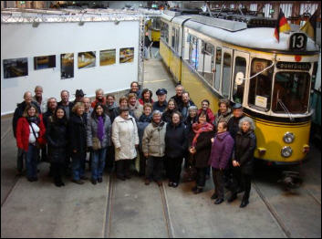 Eigentlich sollte es eine Fahrt mit der Oldtimerstraßenbahn „DoT4“ zum Fernsehturm werden, aber es kam ganz anders. Schon als die Aktiven des HHC am Sonntagvormittag in der Straßenbahnwelt in Bad Cannstatt ankamen, war die Aufregung groß: Die eigens für den 1. HHC Fellbach e.V. reservierte historische Straßenbahn konnte nicht fahren, weil ein tags zuvor aufgebautes Gerüst in der Wagenhalle zu niedrig war und die Bahn (wie alle anderen Oldtimer auch) nicht hindurch passte. Während der Führung durch die Straßenbahnwelt, die viele Erinnerungen an frühere Zeiten weckte, wurde ein Omnibus organisiert, mit dem anstelle der Oldtimerfahrt zur Ruhbank eine Stadtrundfahrt durch Stuttgart durchgeführt wurde. Glück im Unglück – mit dem Omnibus haben wir Stuttgarter Ecken und Winkel entdeckt, die selbst alteingesessenen Fellbachern bislang unbekannt waren. So wurde die anfängliche Enttäuschung durch eine sehr interessante und eindrucksvolle Stadtrundfahrt wettgemacht und die gewonnenen Eindrücke bei anschließendem Kaffee und Kuchen im Speisewaggon „Bistro Meterspur“ angeregt ausgetauscht.