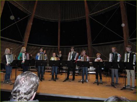 Der Jugendtag am 03.03.2013 begann am frühen Morgen mit einem gemeinsamen Frühstück in der Musikschule. 22 Kinder und Jugendliche stärkten sich zuerst einmal, bevor sie zu ihrem jeweiligen Wertungsspiel vor der dreiköpfigen Jury (Martina Gentek, Nadine Leinmüller und Uwe Thiem) antraten. Nach dem Theorietest war dann genügend Zeit, verschiedene Zaubertricks mit der Zauberin "Crazy the Bird" alias Christina Schächterle einzuüben. Mit Maultaschen und Kartoffelsalat gesättigt, begrüßten die Kinder und Jugendlichen ihre Eltern und Großeltern zum öffentlichen Teil des Jugendtags. Beim Vorspiel im Konzertsaal der Musikschule führte jede/r AkkordeonschülerIn eines der Wertungsstücke vom Vormittag auf und wurde mit einer Urkunde samt Medaille bzw. Pokal belohnt.