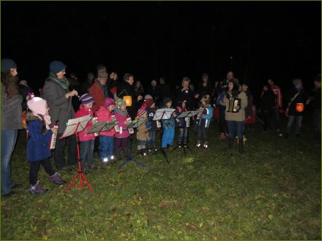 Der HHC veranstaltete am Nikolaustag für die Musikgarten-Kinder eine Laternenwanderung. Ca. 55 Familien machten sich auf den Weg zum "Roten Haus" vom Oeffinger Besinnungsweg, und sangen dabei Laternenlieder. Dort angekommen spielten die Melodica-SchülerInnen Weihnachts- und Laternenlieder, bei denen lautstark mitgesungen wurde. Nach "Lasst uns froh und munter sein" sorgte der aus dem Wald kommende Nikolaus für eine gelungene Überraschung. Dieser brachte für alle Kinder einen gebackenen Tannenbaum, der zusammen mit Punsch für die nötige Stärkung am Feuer sorgte. Beeindruckt vom Besuch des Nikolauses traten alle den Rückweg an.